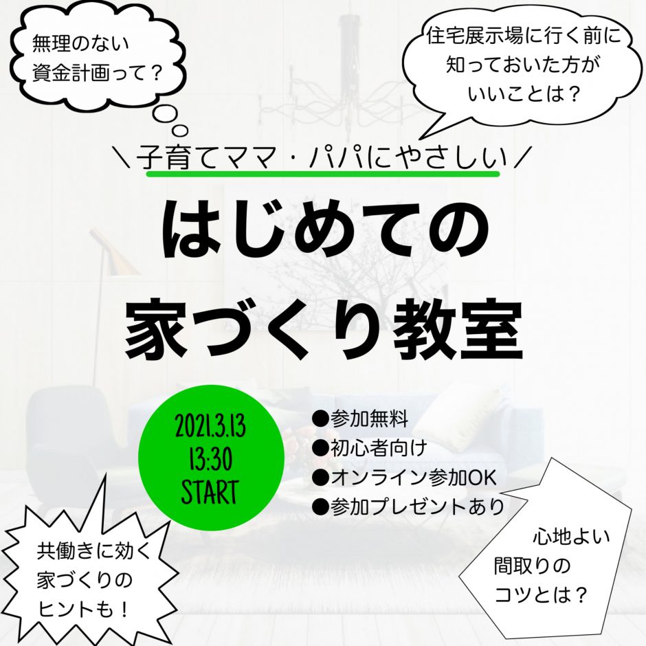 終了しました【参加無料】3月13日開催「子育てママ・パパにやさしい!はじめての家づくり教室」